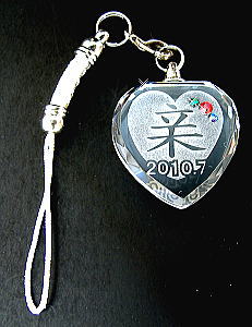 右上にグリーン、レッド、ブルーのラインストーンを組み込んであります